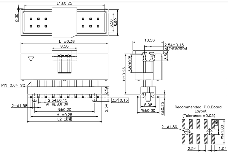 絕緣材料:PBT,尼龍,LCP,UL 94V-0