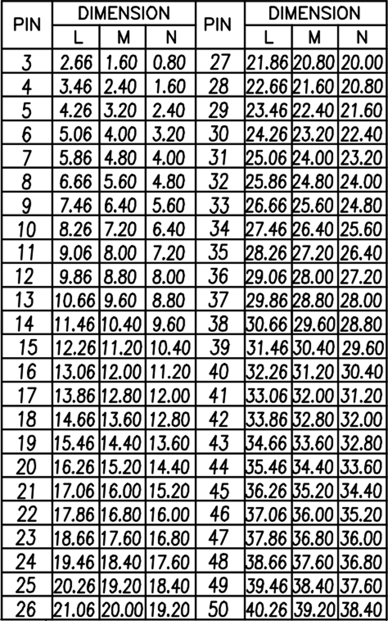 Pitch :0.80 mm / 0.03"