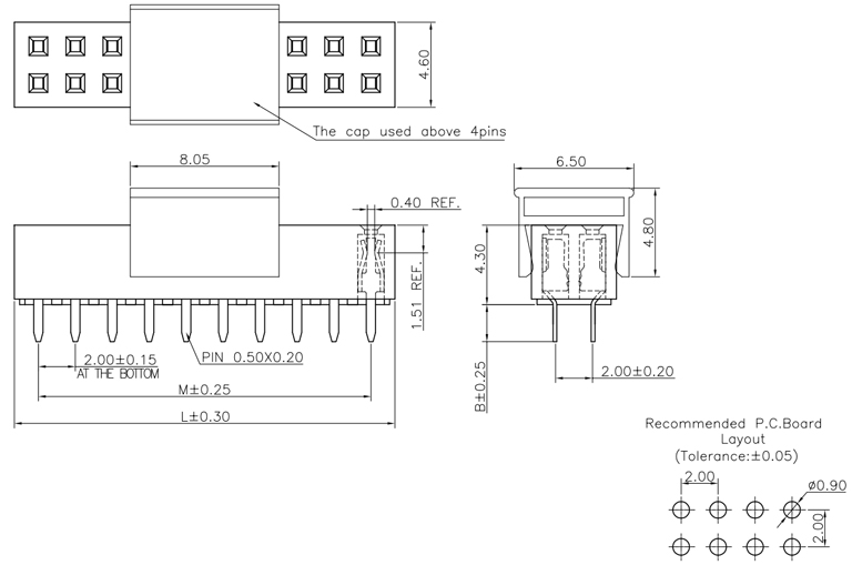 P/H0.8mm 雙排排母 BC222