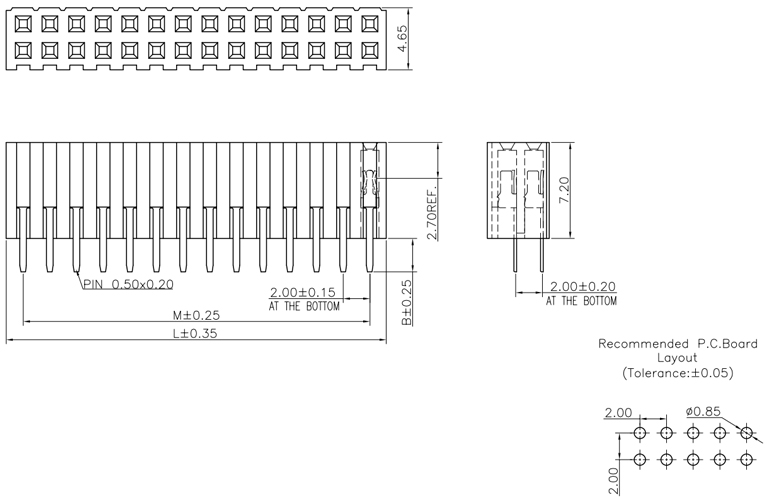 P/H0.8mm 雙排排母 BC222