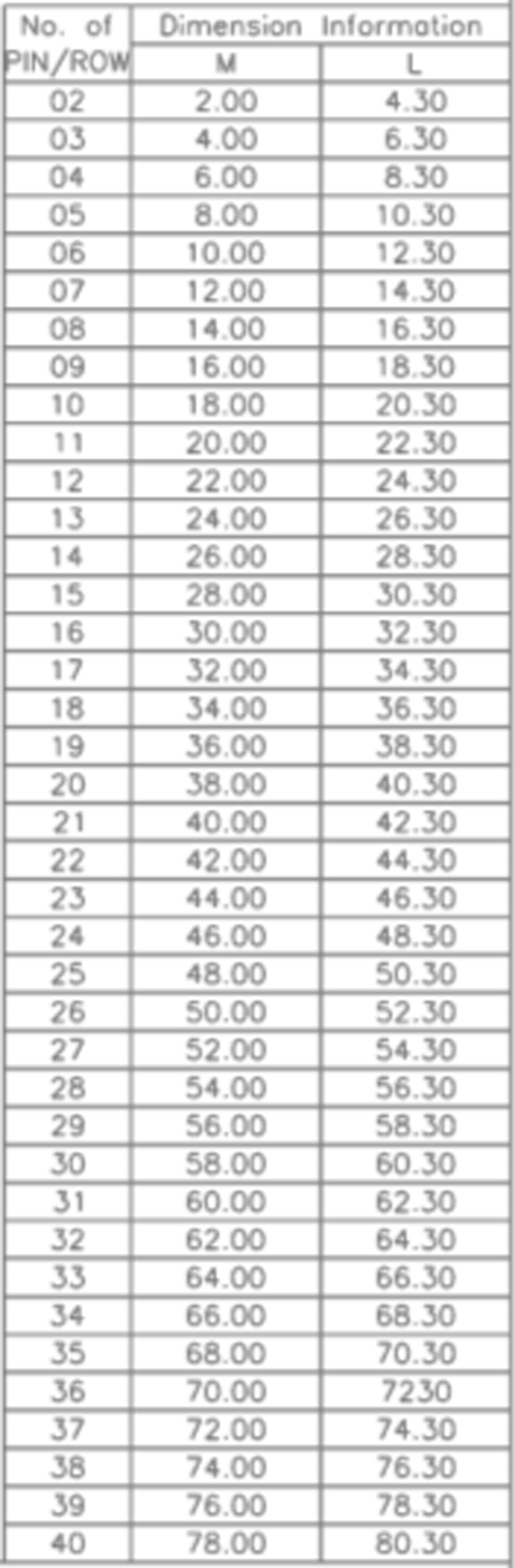 P/H2.0mm 四排排母 FA404