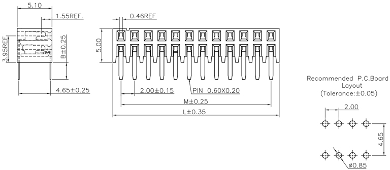 P/H2.0mm雙排排母 FB204