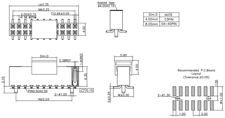 P/H1.0mm 雙排排母 CC211