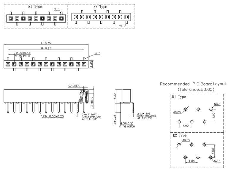 P/H2.0mm 單排排母 FF101