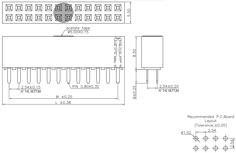 P/H2.54mm 雙排排母 HA208