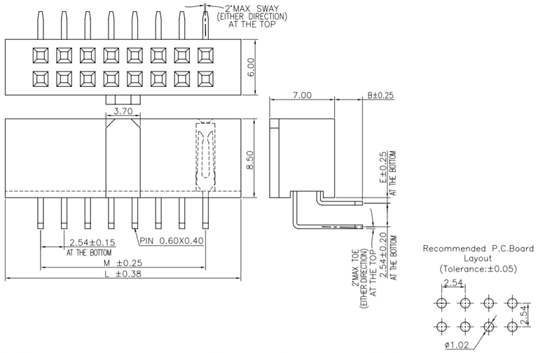 P/H2.54mm 雙排排母 HB217